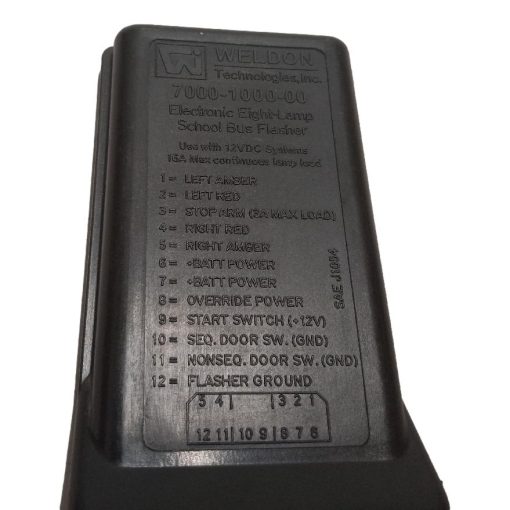 Quality used Weldon 8-Way Flash Controller (7000-1000-00 / FLASHER – SCHOOL BUS 8 WAY STOP LIGHT), Weldon 8 Lamp Black Electronic School Bus Flasher Module) for buses. can be easily adapted for 8 and 4-way lamp operation. Fully potted electronics OEM Equipment for most school bus manufacturers Fast-on and AMP connection options 16 Amps per channel Solid-State output over-current and short-circuit protection, Low Cost, Warranty, Fast Nationwide Shipping!